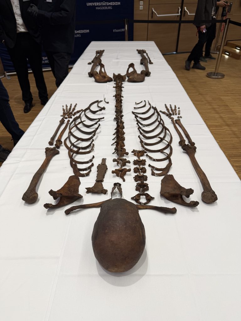Diese Woche hatte Harald Meller der Landesarchäologe von Sachsen Anhalt in einen Hörsaal der Uni-Klinik Magdeburg geladen und ich dachte, ich guck nicht richtig. Auf einem langen weißen Tisch lag ein sehr altes und sehr gut erhaltenes Skelett. Sollten das wirklich die über 1000 Jahre alten Knochen des ersten römisch-deutschen Kaisers sein? Seit der Graböffnung im Sommer haben sich über 50 international renommierte Wissenschaftler mit dem Grabinhalt und vor allem den menschlichen Überresten darin befasst.